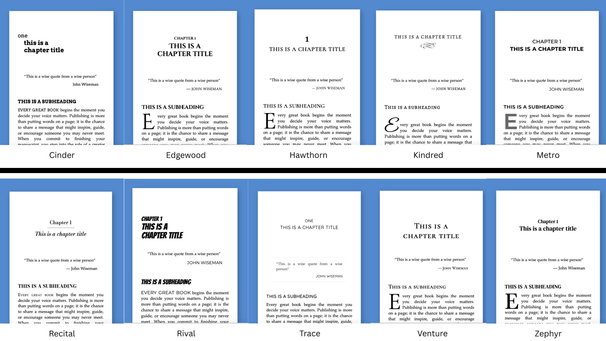 Even great manuscripts can look less polished without proper formatting—which is where we step in to help. We bring traditional-publisher design quality to self-publishers at a simple flat rate, making professional formatting accessible to every author.